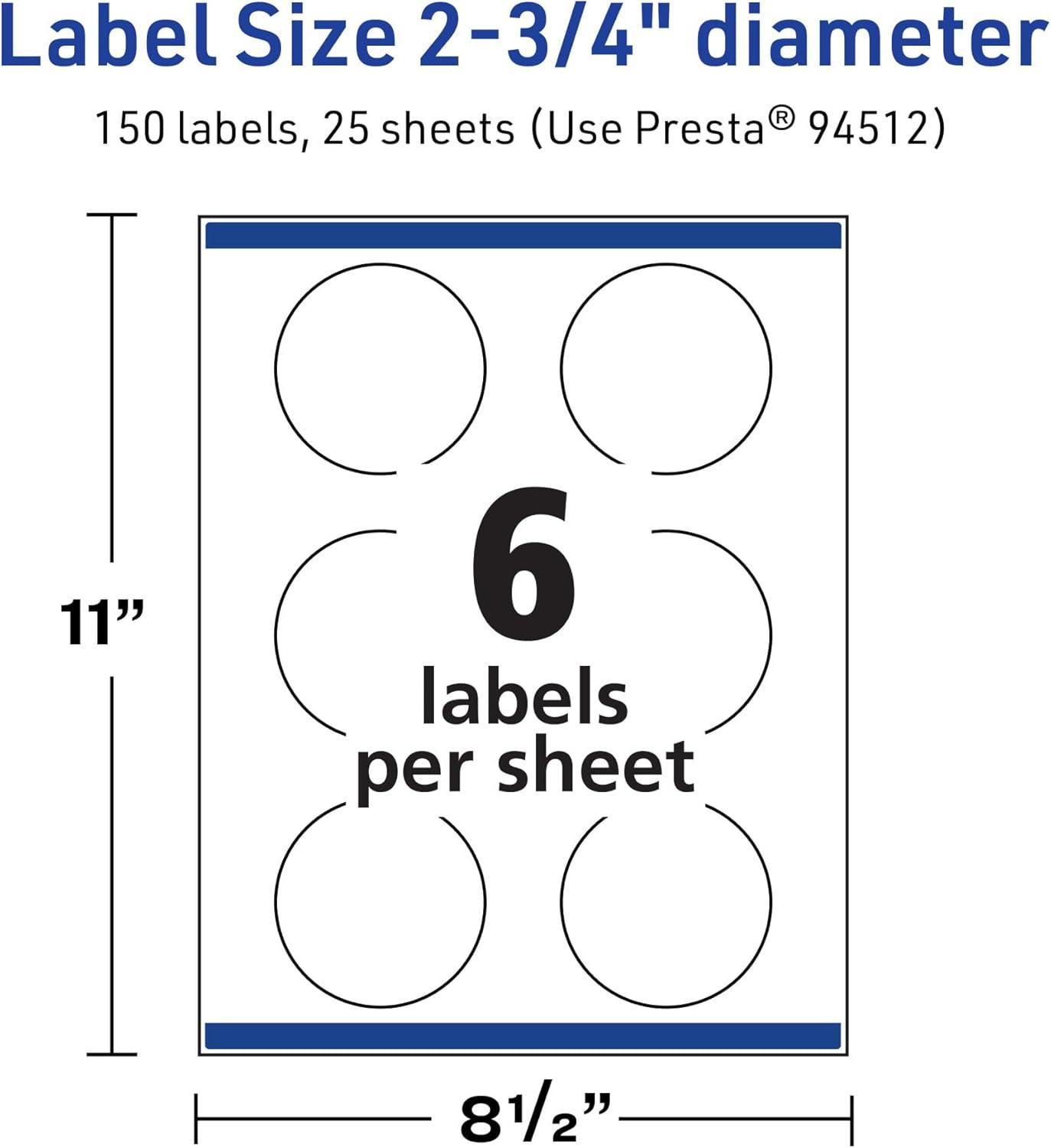 Avery TrueBlock Matte White Round Labels, Sure Feed Technology, 2.75″ Diameter, 60 Matte White Labels, Print-to-The-Edge, Laser/Inkjet Printable, Great for Packaging and Product Merchandising(150 labels)