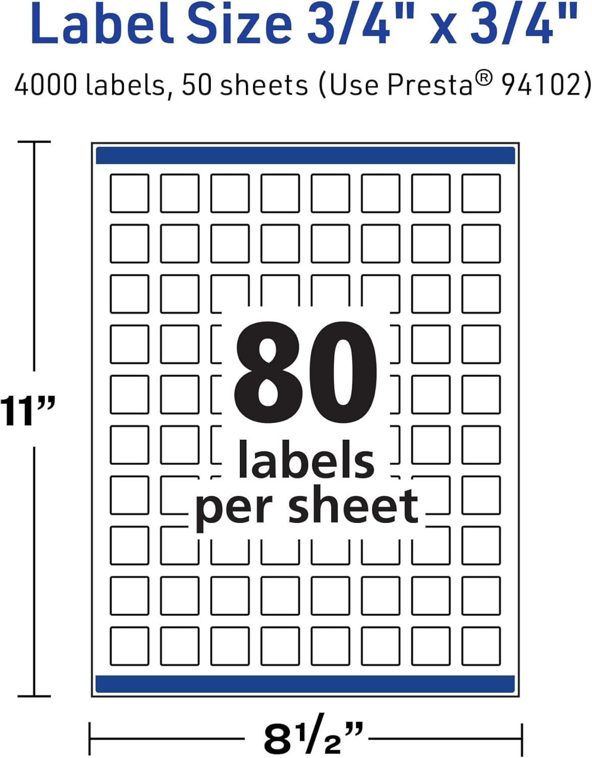Avery TrueBlock Matte White Square Labels, Sure Feed Technology, 0.75″ x 0.75″, 800 Matte White Labels, Print-to-The-Edge, Laser/Inkjet Printable, Great for Product Merchandising Stickers(4 000 labels)