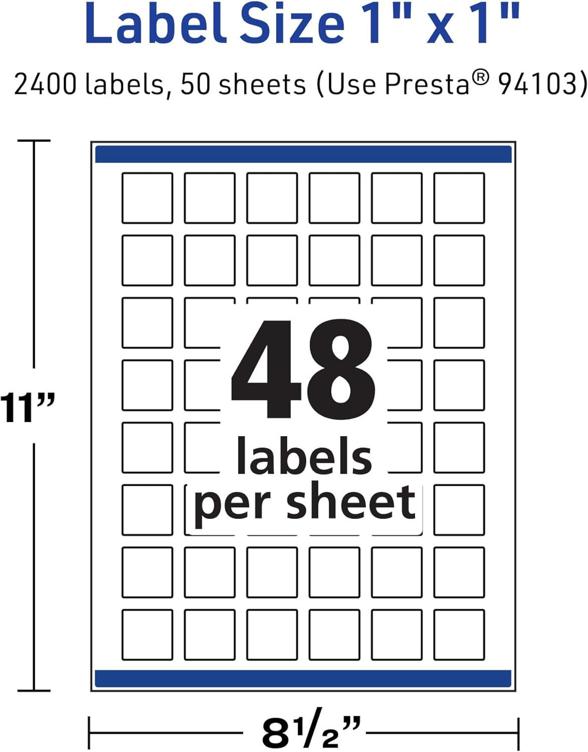 Avery TrueBlock Matte White Square Labels, Sure Feed Technology, 1″ x 1″, 480 Matte White Labels, Print-to-The-Edge, Laser/Inkjet Printable, Great for Product Merchandising Stickers(2 400 labels)