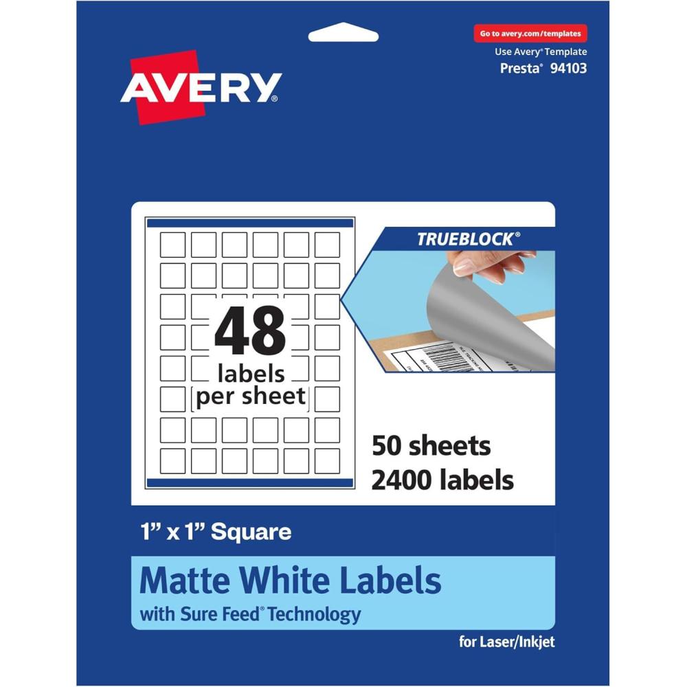 Avery TrueBlock Matte White Square Labels, Sure Feed Technology, 1" x 1", 480 Matte White Labels, Print-to-The-Edge, Laser/Inkjet Printable, Great for Product Merchandising Stickers(2 400 labels)