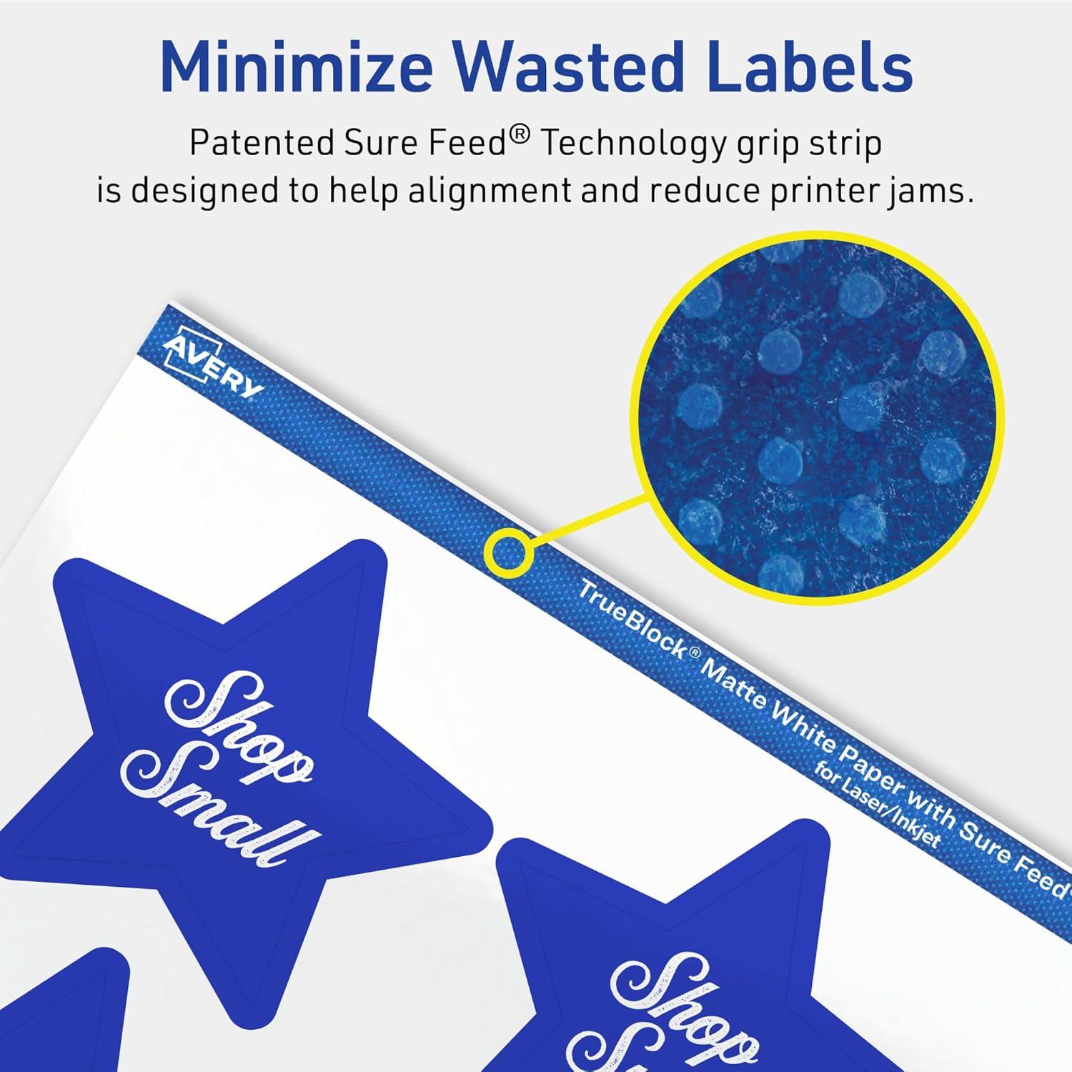 Avery TrueBlock Matte White Star Labels, Sure Feed Technology, 2-1/4″ x 2-3/8″, 120 Matte White Labels, Print-to-The-Edge, Laser/Inkjet Printable, Great for Making Stickers or Product Merchandising(300 labels)