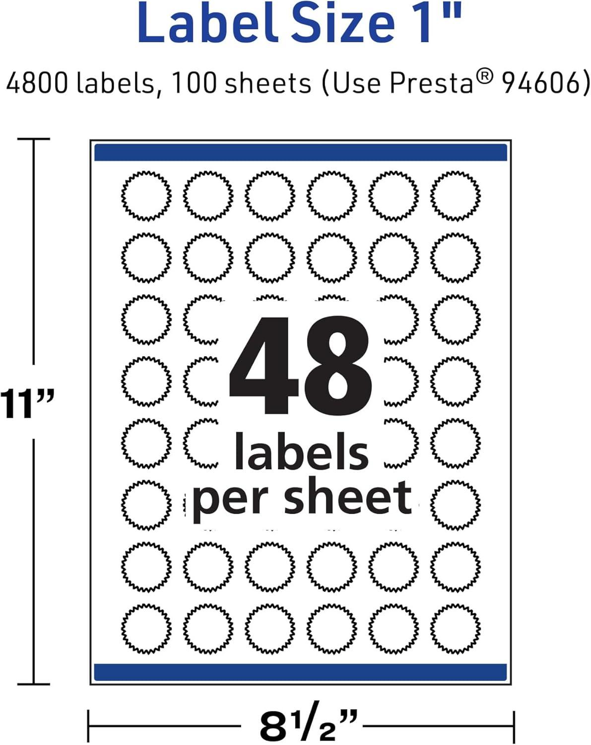 Avery TrueBlock Matte White Starburst Labels, Sure Feed Technology, 1", 2,400 Matte White Labels, Print-to-The-Edge, Laser/Inkjet Printable, Great for Packaging and Product Merchandising(4 800 labels)