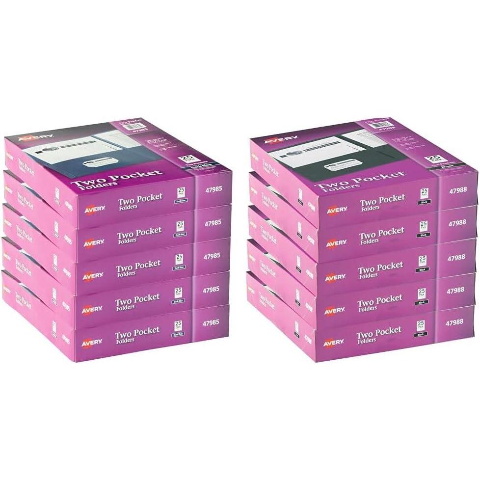 Avery Two Pocket Folders, Holds up to 40 Sheets, Business Card Slot, Ideal for Portfolios, Presentations and School, Dark Blue, Box of 25 (47985)(125 pack)