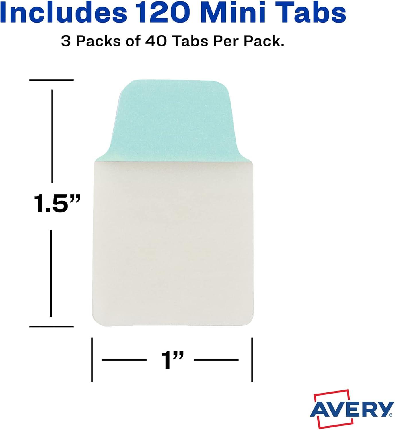 Avery Ultra Tabs, Mini Tabs, 1" x 1.5", 2-Side Writable, Assorted Pastel Colors, Self Adhesive, Repositionable, 40 Per Pack, 120 Total (3-Pack of 74761)(Pastel Solid)