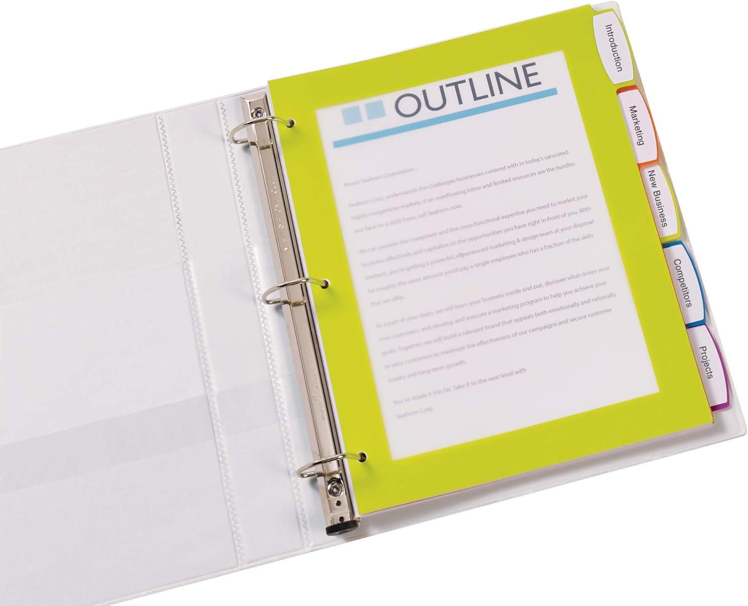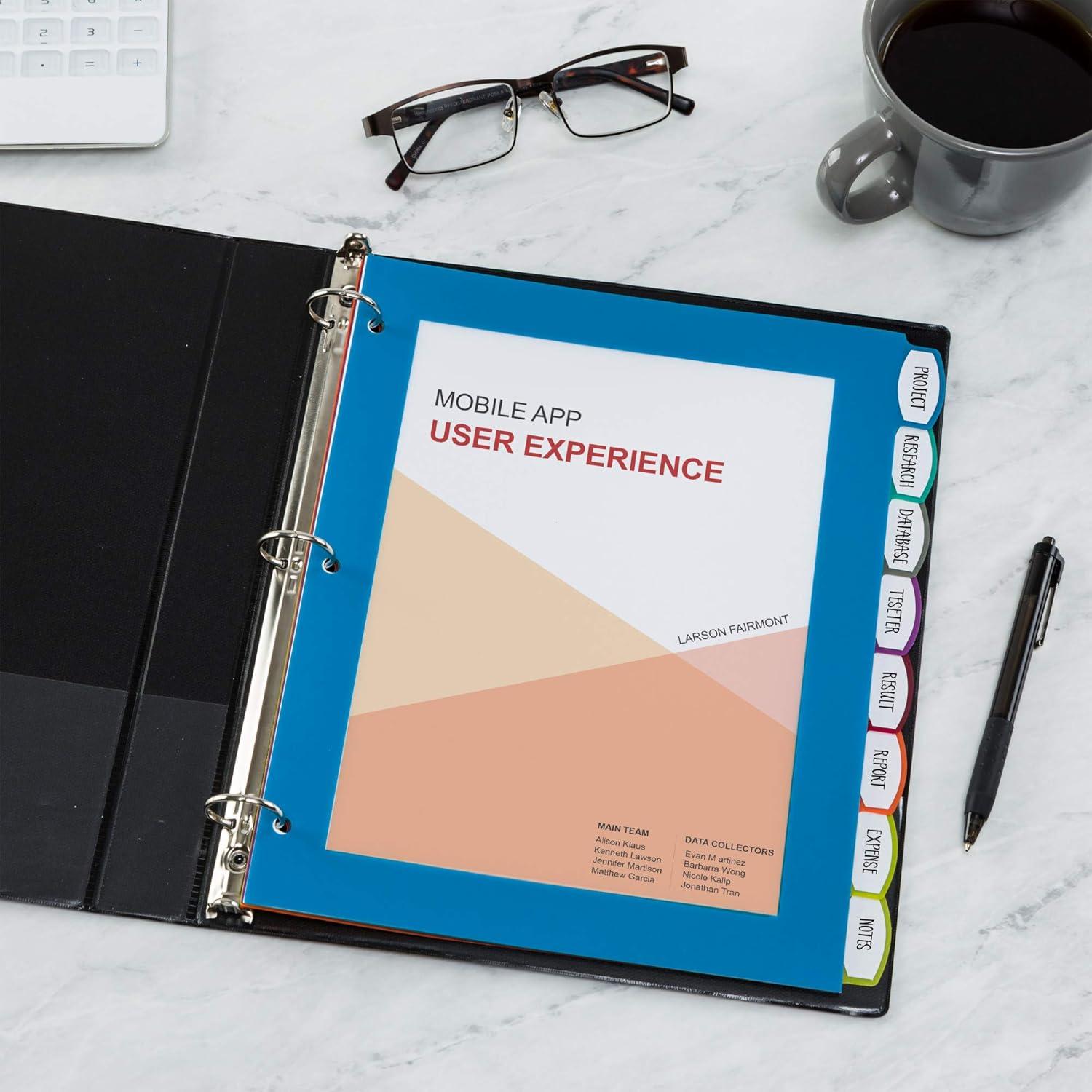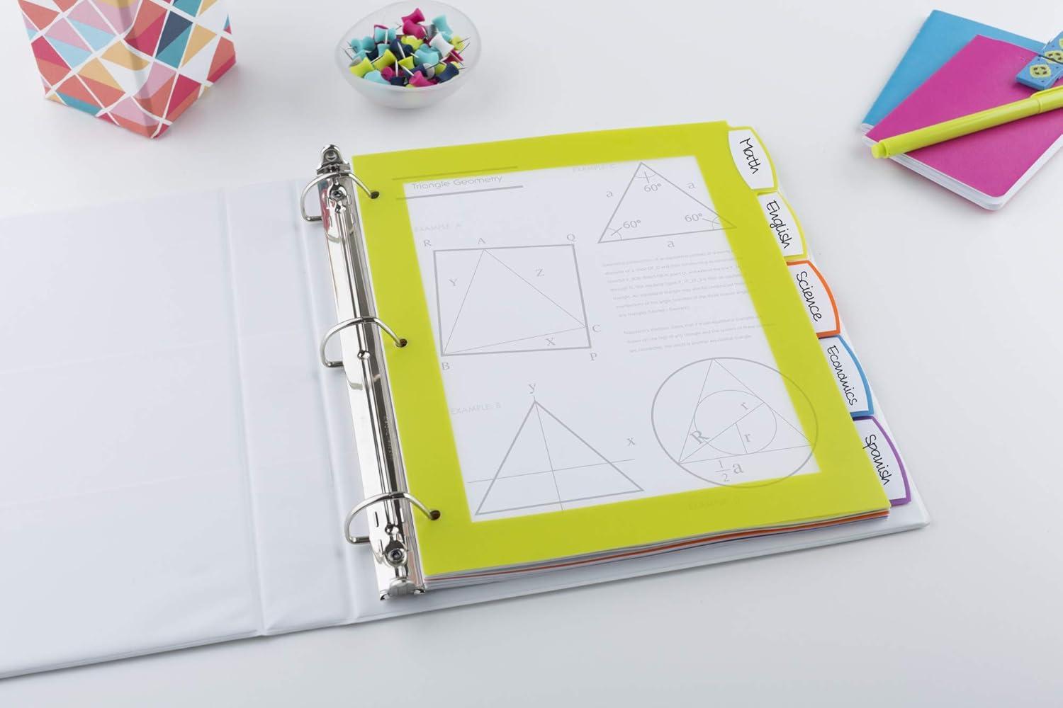 These durable Avery dividers are made of ultra-tough, tear-resistant plastic. They offer 1.5 times more space for printing on the tab compared to standard ones. A see-through window allows for easy referencing. The pack includes printable or write-on adhesive tab labels and features five vibrant border designs. You can personalize your tab labels using free fonts, templates, and designs at avery.com/print. Ideal for use at school, home, or work, these dividers are three-hole punched and ready to use.