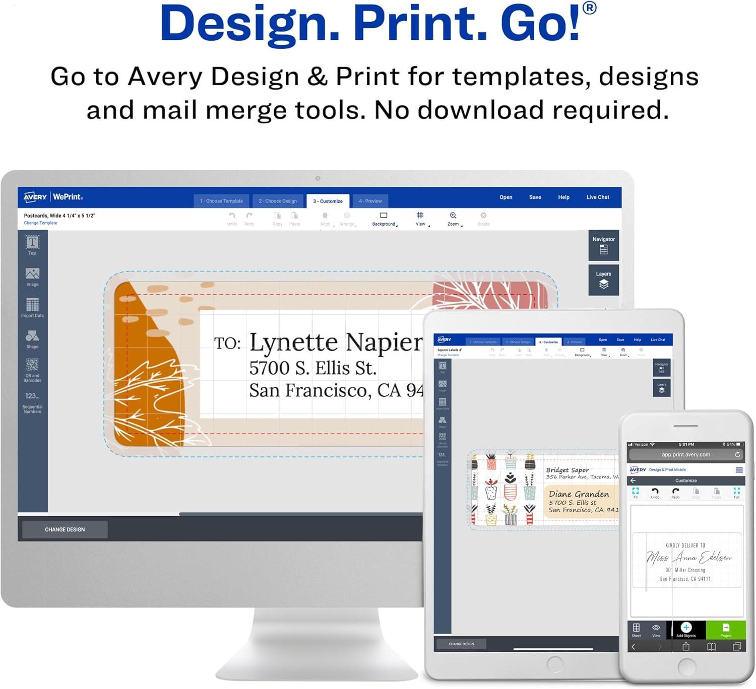 Avery Clean Edge Printable Square Cards with Sure Feed Technology, Rounded Corners, 2.5″ x 2.5″, White, 180 Blank Cards for Inkjet Printers (35702)(Glossy White)