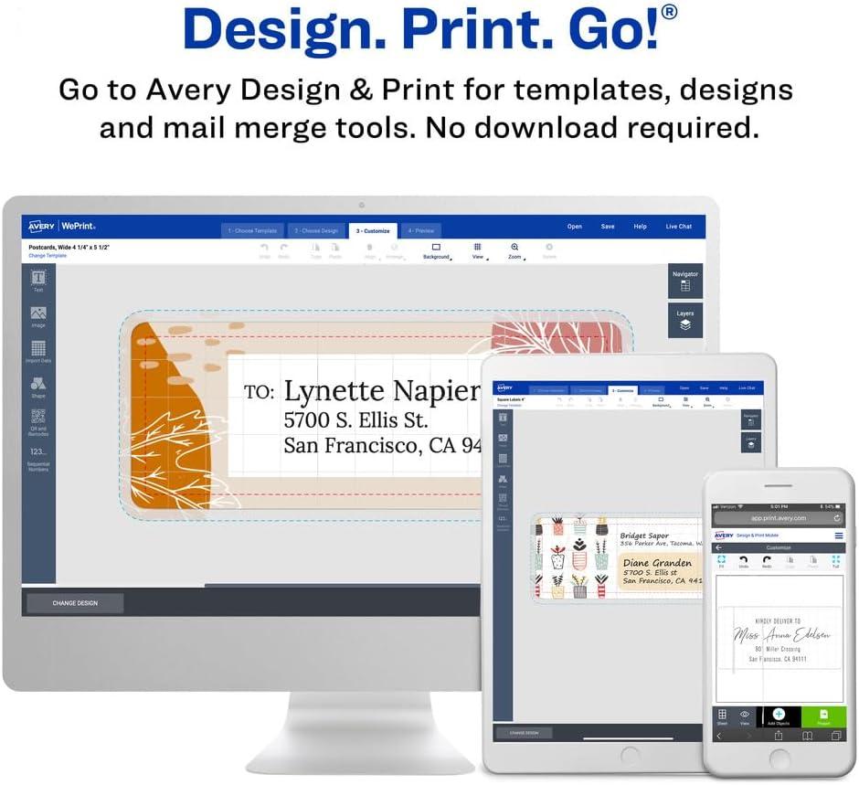 Avery Printable Postcards, 4.25″ x 5.5″, Matte White, 200 Blank Postcards for Inkjet Printers (8387)(Glossy White)