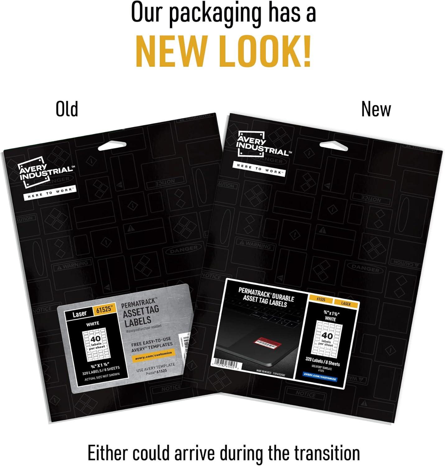 Avery White Asset Tag Labels, 3/4" x 1-1/2", Laser Printable Tags, 320 Waterproof Labels (61525)(3/4" x 1-1/2")