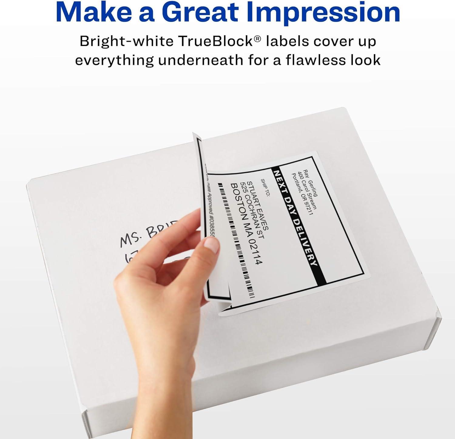 Not your basic label. UltraHold permanent adhesive is guaranteed to stick and stay put on cardboard, envelopes, paper, glass or metal. Avery address labels won't lift, curl or fall off like other brands. Quickly and easily create your own personalized labels. No more jams or smudges with Avery shipping labels. Bright white labels are optimized for laser printers so you can effortlessly print bold bright colors and clear sharp text. Easily and efficiently create your own personalized labels with these Avery Shipping Labels with TrueBlock technology. Our TrueBlock technology lets you cover up everything underneath the 3×4 labels, so you can reuse boxes and block out markings and mistakes for a polished, professional appearance on the bright white labels. This 600 bulk pack of shipping labels is fantastic for high-volume shipping and mailing jobs, as well as for creating custom labels for gift tags, crafting, party favors and more. These address labels are optimized for laser printers so you can easily print lush colors and crystal clear text without worrying about printer jams or ink smudges. You can also effortlessly personalize your printable labels with logos, graphics or images using the free shipping labels template and designs on the Avery site.