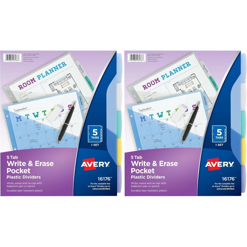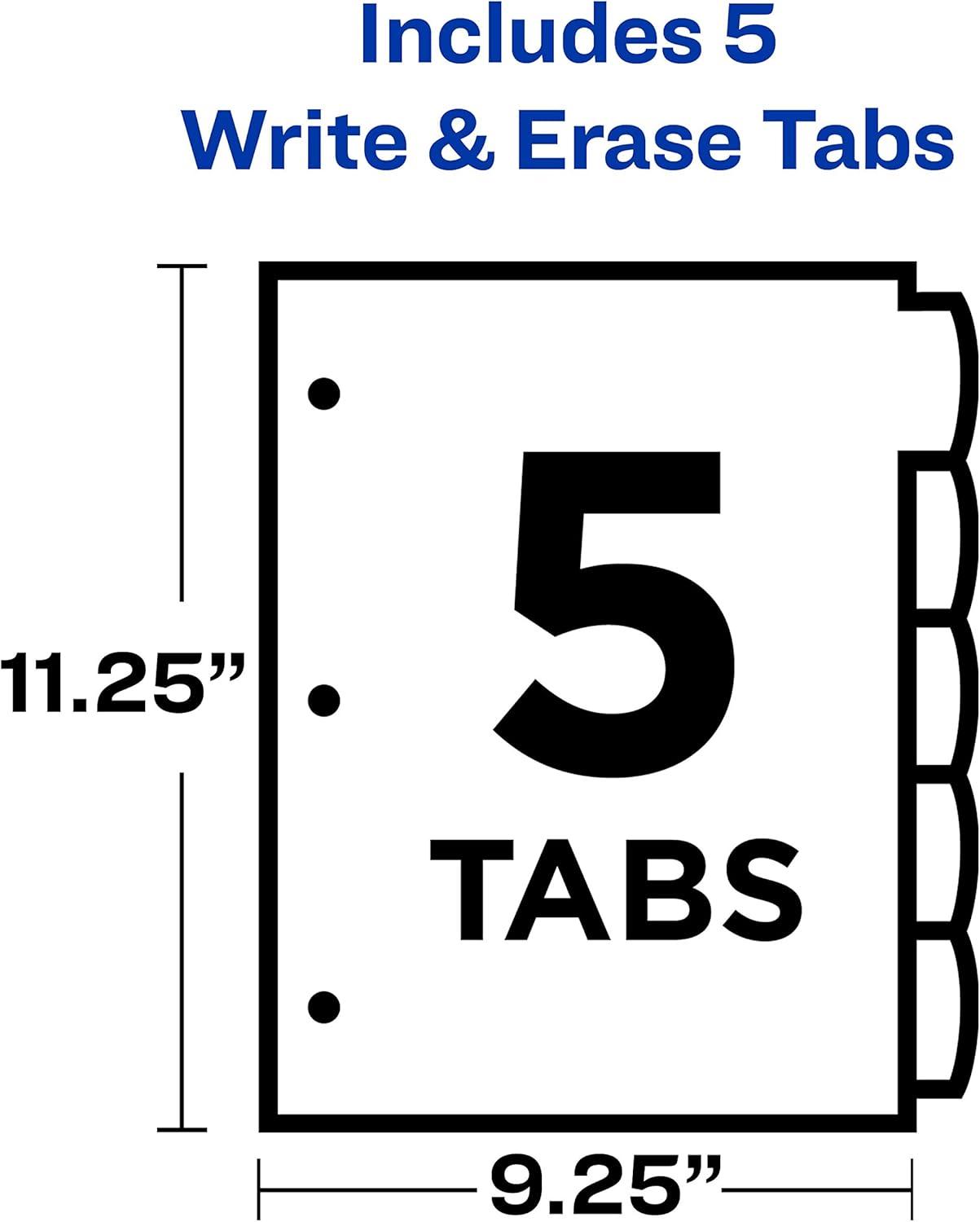 Avery Write & Erase Pocket Plastic Dividers for 3 Ring Binders, 5 Tab Set, Works with Sheet Protectors, Multicolor, 1 Set (16176)(Multicolor)