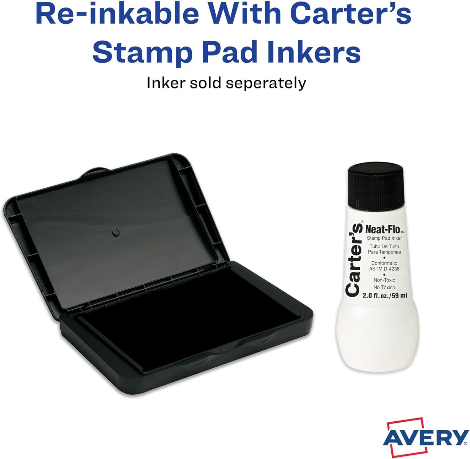 This 3-pack of Carter's 2.75″ x 4.27″ foam stamp pads are pre-filled with bold black ink and are perfect ink pads for stamping. Made with a reliable foam pad, these stamp pads are perfect for everyday crafts and office work. Filled with a lasting permanent ink that can be used on paper, wood, fabric and more. Conforms to ASTM D 4236 and ACMI AP-certified as non-toxic, ink is safe for use in schools, offices and homes. The hinged lid snaps closed to help keep the ink fresh. The slim profile also makes it easy to keep these stamp pads stored away until needed. Once you've used all of the ink in each pad, easily refill the stamp pad with Carter's Neat-Flo stamp pad inkers by just dabbing the ink into the pad. Whether you're stamping for crafts, scrapbooks, greeting cards or homework, Carter's stamp pads will make sure every one of your stamps are filled with color.