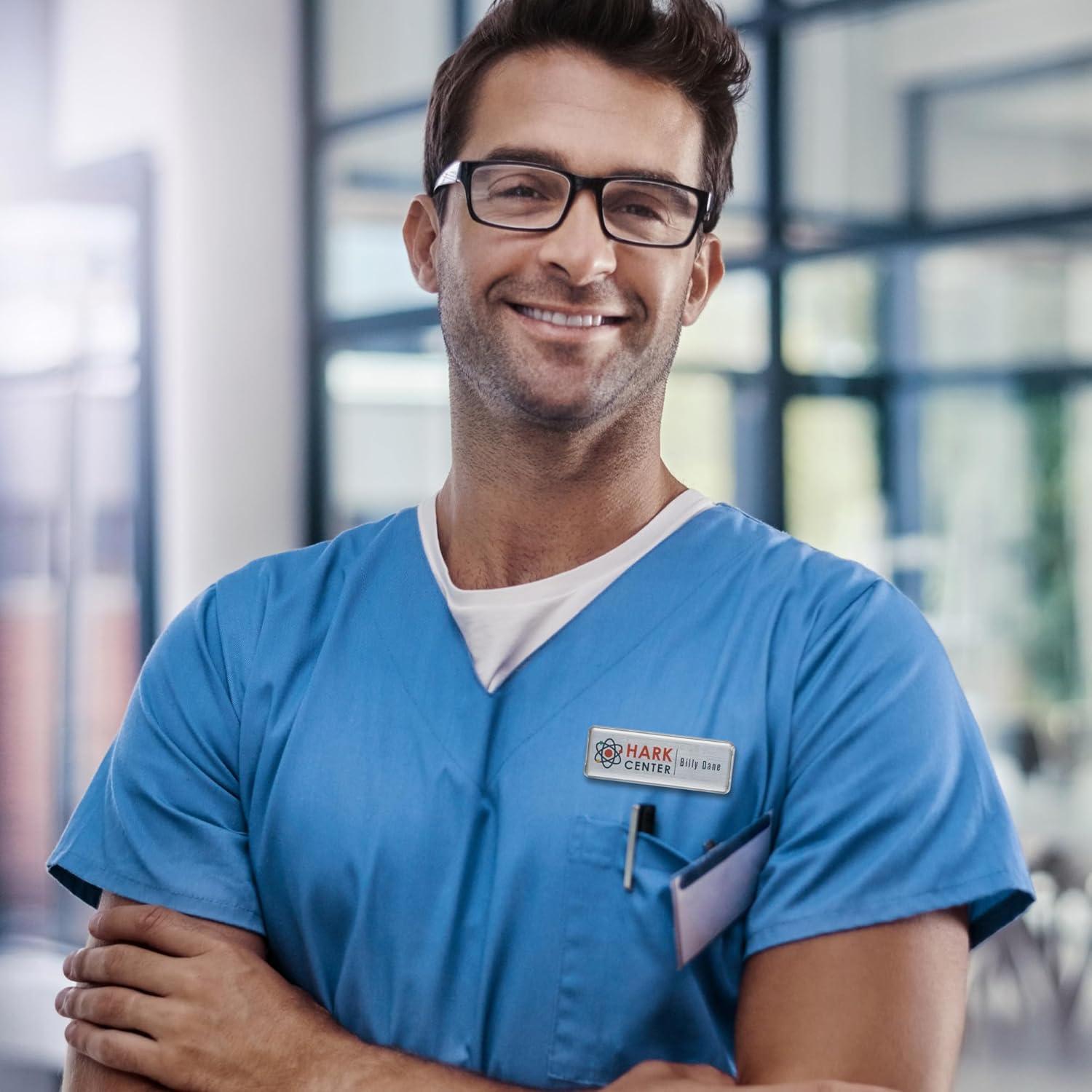 The reusable design makes these name badges the simple and efficient choice for employee ID badges hotel name tags restaurant name tags and more